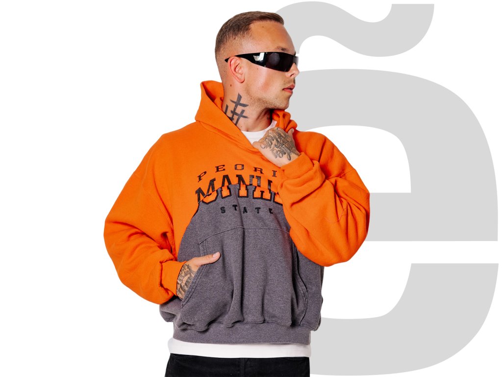 Brunclo Peoria Cropped Welded Hoodie (Grey/Orange)