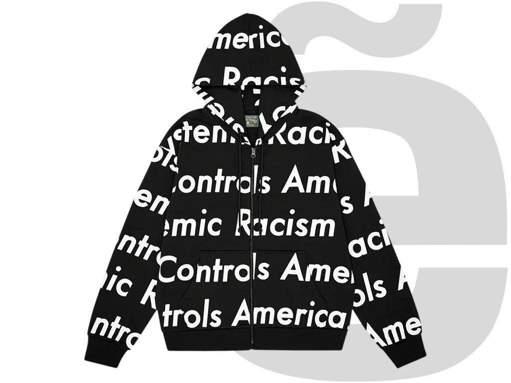 Denim Tears Systemic Racism Controls America Zip Up Hoodie (Black)