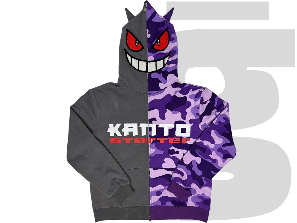 Kanto Starter Split Gengar Hoodie (Purple Camo/Grey)
