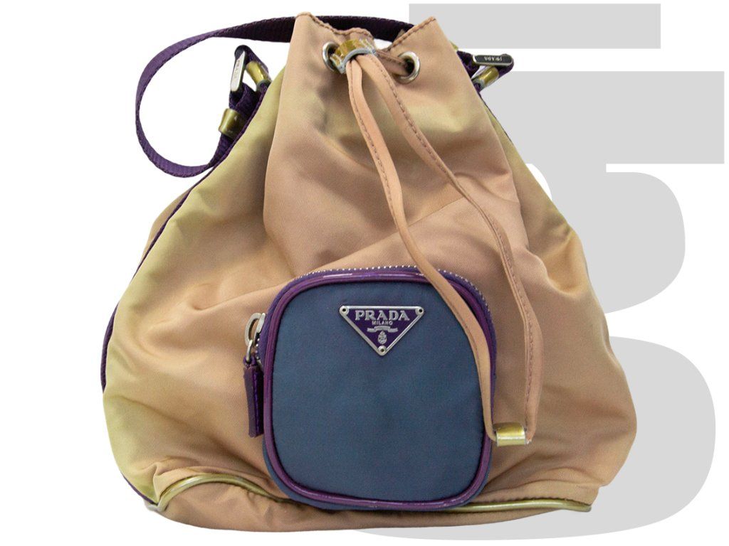 Prada Nylon Bucket Bag (Tan/Purple)